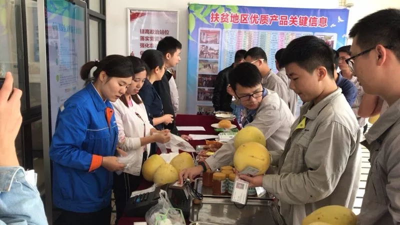 ▲在扶貧日當天,寧德核電基地餐廳準備的3000斤產自中國扶貧之第一村赤溪紅心柚,在短短半小時內全部售罄、供不應求。