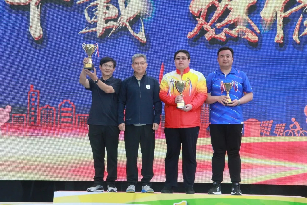 △集團公司黨委書記、董事長賀禹為團體成績前三名的核服集團、工程公司、新能源公司頒發獎杯。