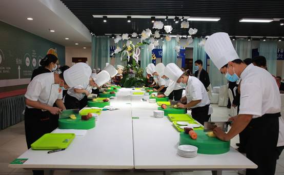 決賽歷時2天,來自全國各核電基地的30名專業廚師齊聚一堂,用專注的態度、專業的技能巧思創作、精心研發、同場競技,為現場評委和觀眾奉獻了一場精彩紛呈的團餐作品盛宴。本次技能競賽旨在提高集團團餐服務質量整體水平,規范集團團餐服務單位在運營、生產、服務各個環節的過程管理,競賽設置理論(20%)、刀工(30%)、烹飪(50%)三個項目,其中,烹飪環節集中考核固定菜品、自選菜品和邊角料創意利用,采用線上答題、現場評分的形式進行角逐。最終,陽江分公司周華輝憑借扎實理論、出眾廚藝和特色佳肴,在眾多實力對手中脫穎而出,斬獲第一名,餐飲公司石磊、白鷺健康公司黃春寶、陸豐分公司彭澤強、餐飲公司何志軍分別獲得第二至五名。